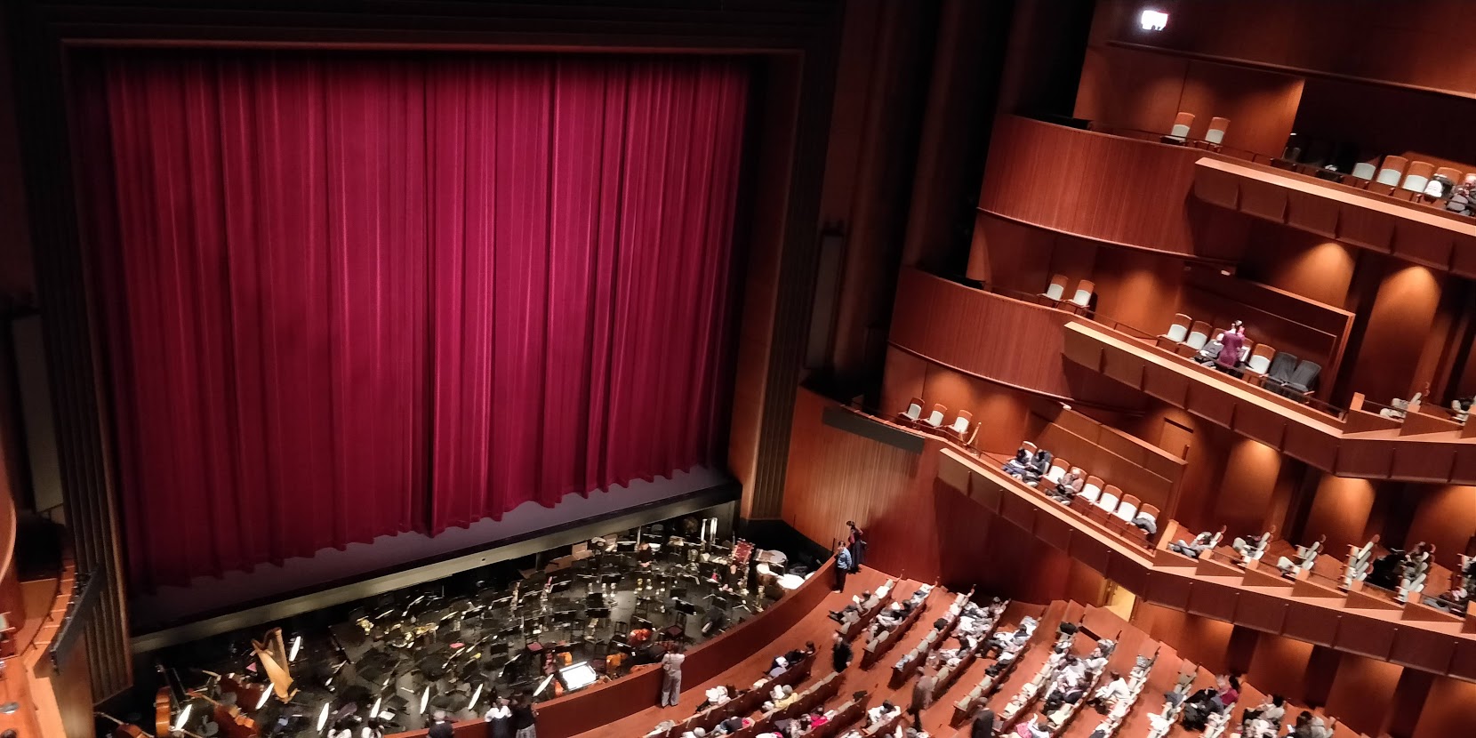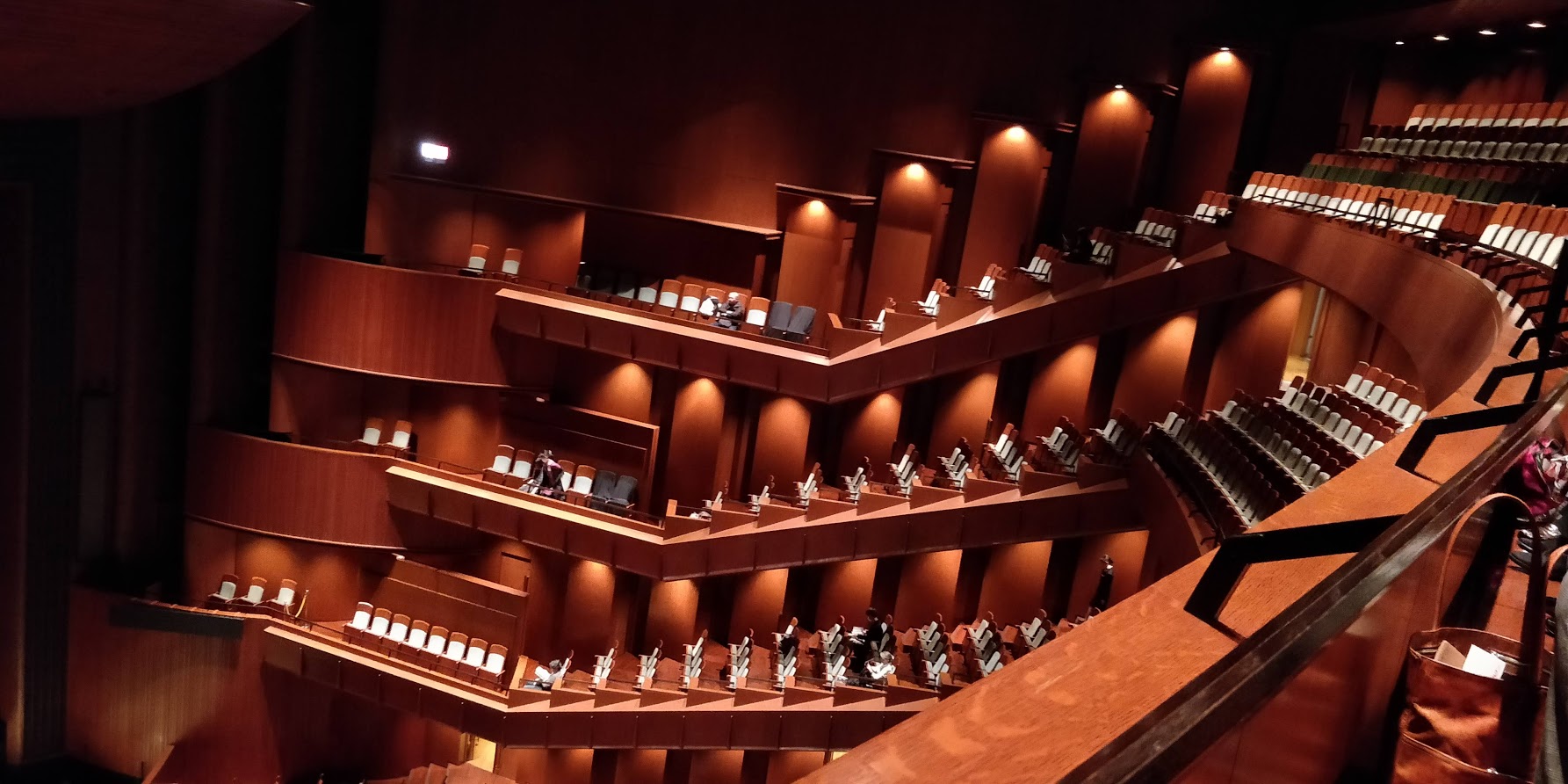 În zece minute am ajuns la Opera. Cladirea este nouă, sala imensă, cu loje și balcoane pe patru etaje,. Și aici organizarea nu permite nici o greșeala, sunt o armată de plasatoare care să te orienteze către locul tău, asta dacă nu te descurci cu toate săgețile și indicațiile de pe pereți. Există câte o intrare la fiecare 2 rânduri, pentru a eficientiza evacuarea în caz de situație de urgență. Decorul e sobru, mult lemn, scaune comode, spațiu suficient ca să nu stai cu genunchii la gură. Și cireașa de pe tort: o ventilație foarte bună, comparativ cu Opera din București unde te coci la propriu dacă îți iei bilete la balcon.