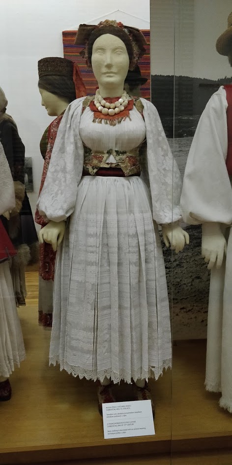 Muzeul de etnografie este genial. Usor de ajuns pe jos, chiar in centru, in aceasta perioada este in renovare fatada, trebuie putina atentie cand cautati. Ca de fiecare data personalul m-a impresionat prin bunavointa de a-ti impartasi date despre exponate. Doamna care statea la supraveghere vorbea fluent limba engleza si cunostea detalii despre fiecare exponat. Ne-a raspuns la intrebari cu amabilitate. De verificat programul, sambata si duminica aici este program scurt, pana la 13. Exponatele mi-au placut mult de tot, poalele lor sunt mai frumoase decat ale noastre (dat fiind ca nu le acopera cu catrinte au camp ornamental mai bogat si multe cute plisate; probabil din aceasta cauza in tinutele femeilor de pe strada se regasesc pliseurile atat de mult – fuste, bluze, pantaloni). Camasile cu maneci cum ador eu: largi, ca aripile de inger, stranse pe manseta lata. Cusatura nu e asa marunta ca la noi . Am regasit broderie asemanatoare cu partea de Banat, Transilvania (broderie cu fir metalic .