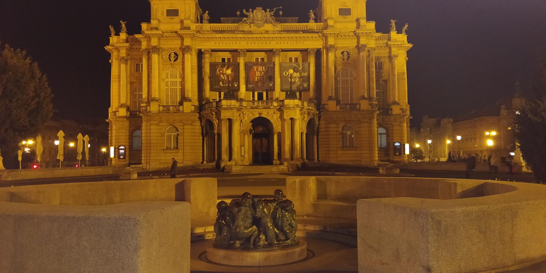 Daca nu gasiti bilete la teatru / opera(cum mi s-a intamplat si mie) puteti face turul acestuia, ghidajul insa e doar in croata. Merita vazut si din alta perspectiva, nu doar cea festiva : iti dai seama ce munca intensa se afla in spatele a doua – trei ore de spectacol. Se montau decorurile pentru Flautul fermecat, opera lui Mozart. In timpul turului nu stiu cum am avut ideea de a intreba daca pot vedea totusi spectacolul. Si MINUNE! Am gasit un masinist care ne-a primit pe invitatiile lui. Asa ca am avut bucuria si onoarea de a vedea un spectacol dorit, intr-un moment neasteptat ( si chiar daca citatul poate pare perimat: cand ai o dorinta Universul intreg va conspira ca sa ti-o indeplineasca). Calatoria de dimineata prin culisele operei, (cu vizionarea garderobei, a salii de repetitii pentru corpul de balet, tamplarii care montau decorul, mirosul de lemn si aracet, luminile in probe, strigate si lovituri de ciocane) si seara spectacolului (cu stralucirea specifica operei, rochii elegante, perle, miros de parfum) au facut ca ziua sa fie PERFECTA!