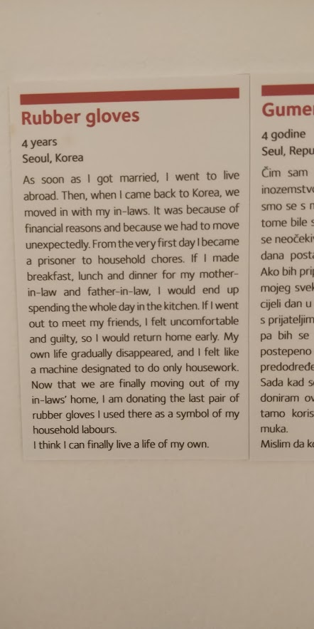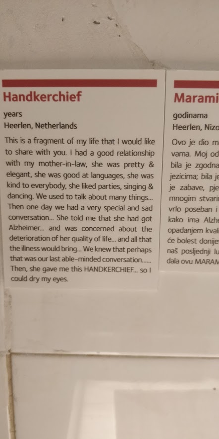 Muzeul inimilor frante…intrarea scumpica 40 kune de persoana, Am intrat cu emotie si dupa primul exponat mi-a trecut prin cap ca am dat banii de pomana . Dupa prima camera insa mi-am schimbat parerea si m-am lasat prinsa de povestile de pe pereti: povesti de viata, unele haioase, altele atat de triste ca te lasa fara aer. Daca ajungeti in Zagreb nu-l ratati!!!