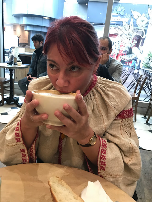 Parisul ne-a întâmpinat cu ploaie, fină și rece. Cazarea a fost minunată, în cameră aveam tot ce trebuie pentru o ședere decentă: frigider, uscător de păr, cafetieră, cuptor cu microunde, plită, veselă. Sincer, nu prea am stat în cameră, dar recomand cazarea la Residence du forum des halles. Vis a vis de cazare am găsit o locație unde cafeaua se bea la…. castron. Las aici mărturie…